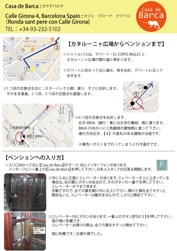 | 行き先 | 「Calle Girona 4 (カジェ ジローナ クワトロ)」と伝えるか、 こちらを印刷して運転手へ見せると確実です。 |